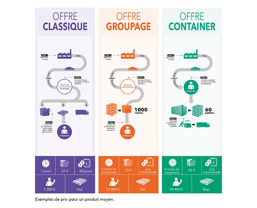 Afin de vous proposer nos produits au meilleur prix, nous vous proposons une solution inédite moins contraignante que l’achat de container complet.