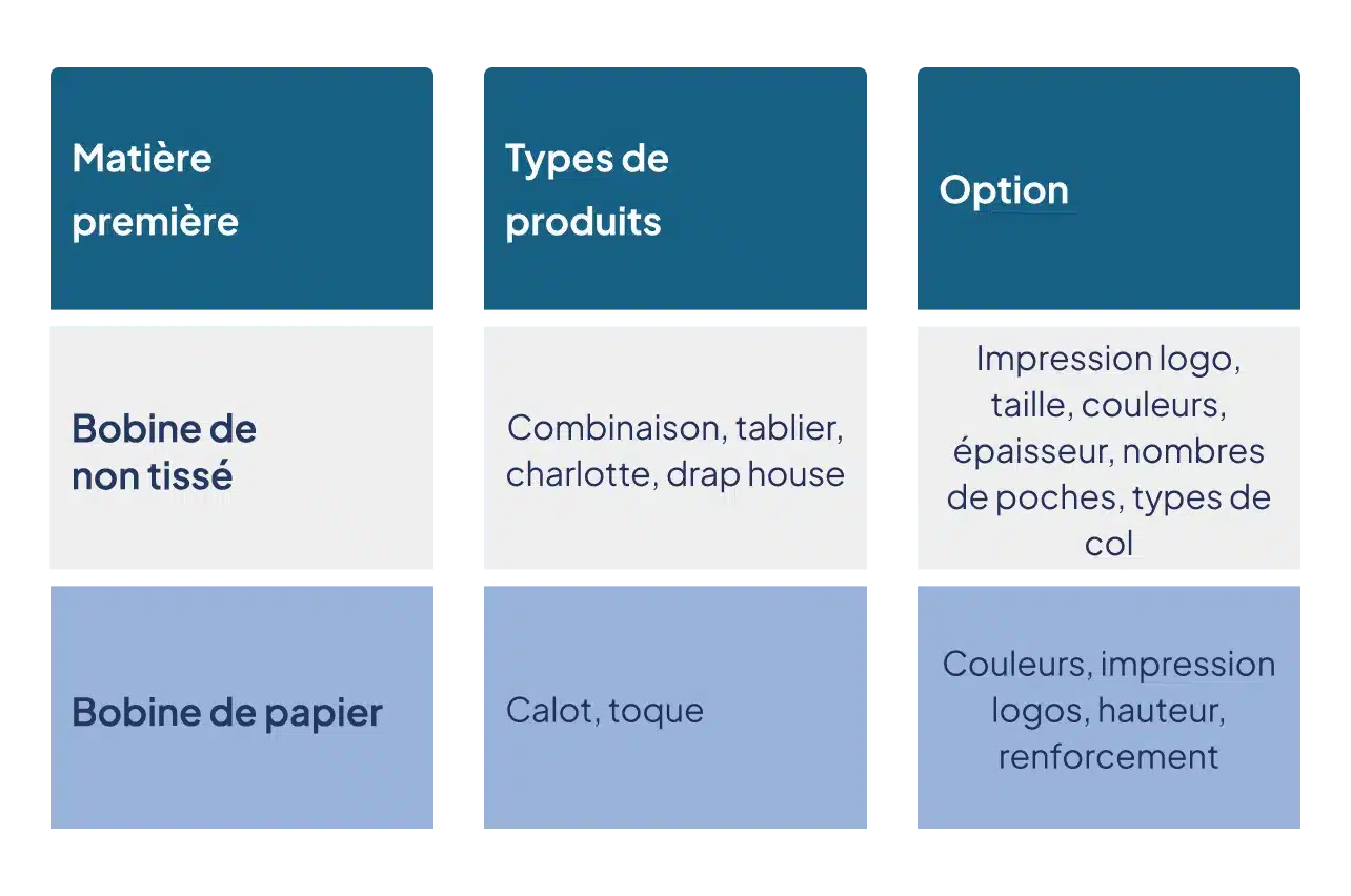 Du choix de la matière première jusqu’au conditionnement final, nous vous proposons de définir vous-même toutes les caractéristiques de votre produit selon vos besoins.